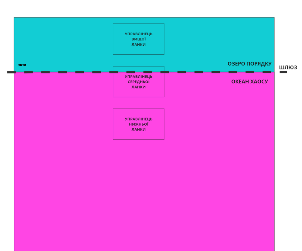 Виставити шлюз між розумінням ситуації верхньою ланкою управлінців, хаосом середньої ланки управлінців і потоком людей нижньої ланки управлінців.